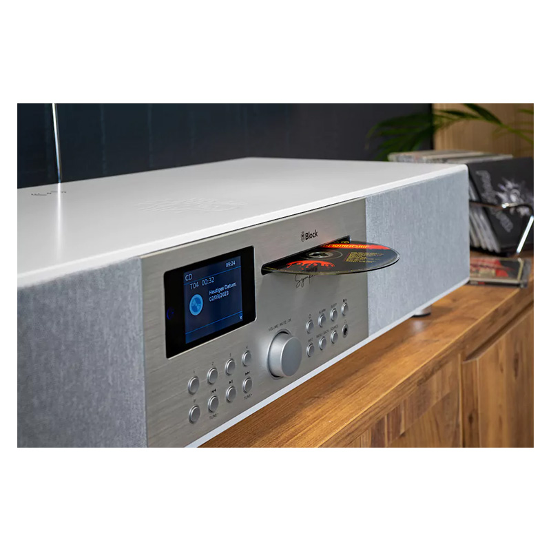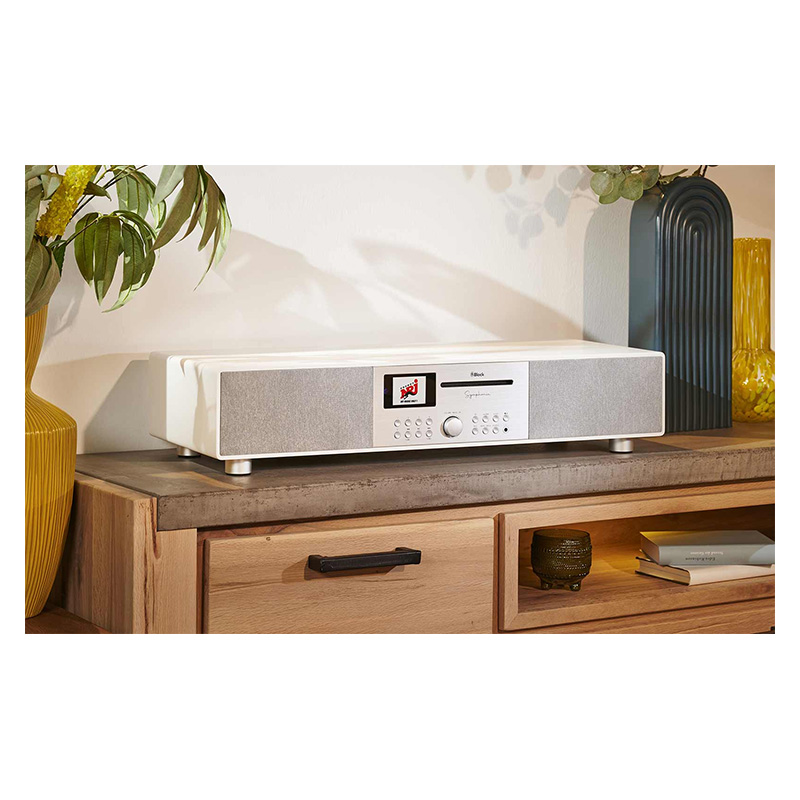 Radio design, réception DAB+, FM, restitution radio Internet, lecteur CD intégré, restitution MP3, télécommande, In AUX, entrée optique numérique