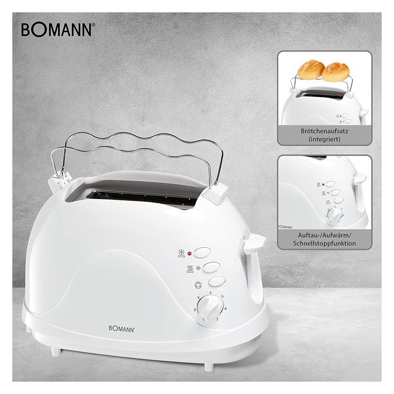 Grille-pain à 2 fentes, , fonction décongélation, témoin de contrôle, module à petits pains intégré, tiroir à miettes, 700 Watts