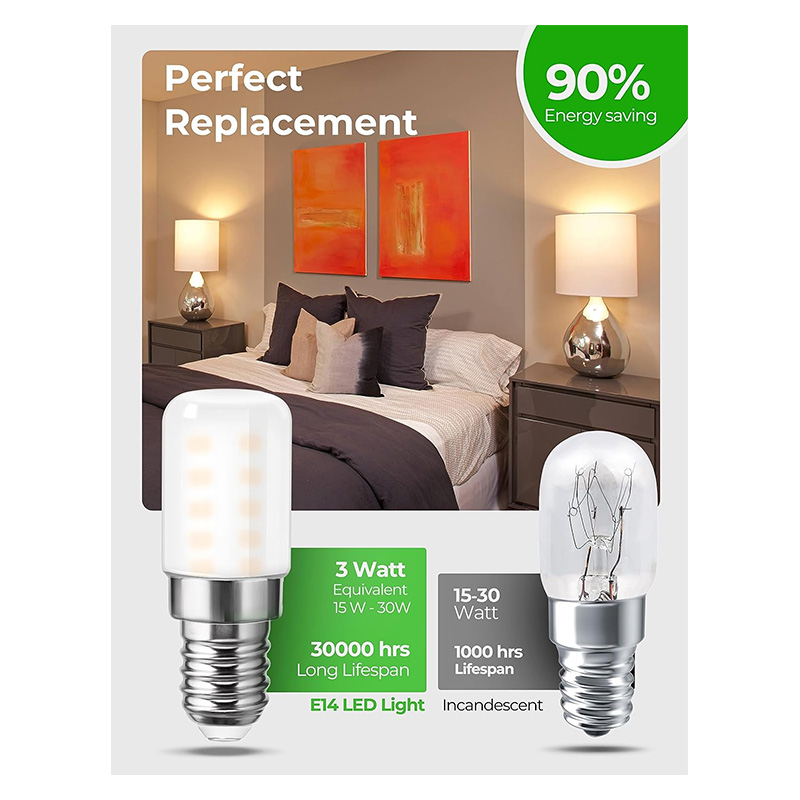 Bonnov Ampoule LED E14 pour Réfrigérateur, 3W E14 LED Ampoule équivalente à une Ampoule 30W, Blanc Chaud 3000K, 350LM, LED Lampe pour Frigo, Machine à Coudre, Non-dimmable, Lot de 2