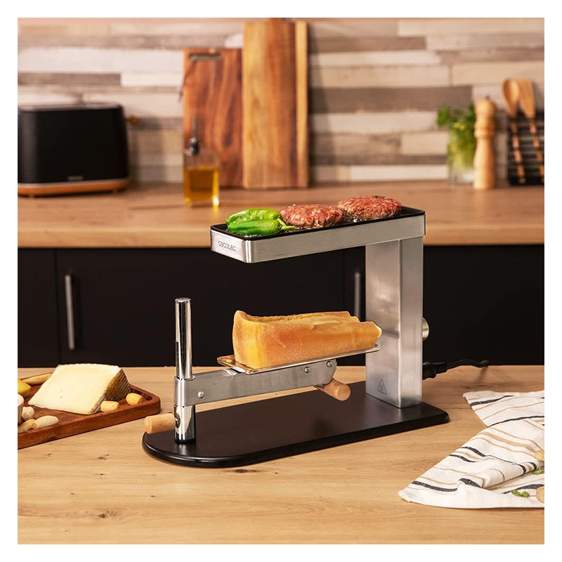 Cecotec Raclette Grill Cheese & Grill 6000 Inox. 600 W, Design Élégant en Acier Inoxydable, Grille Supérieure en Aluminium Antiadhésif, Thermostat Réglable, Support à Fromage Ajustable