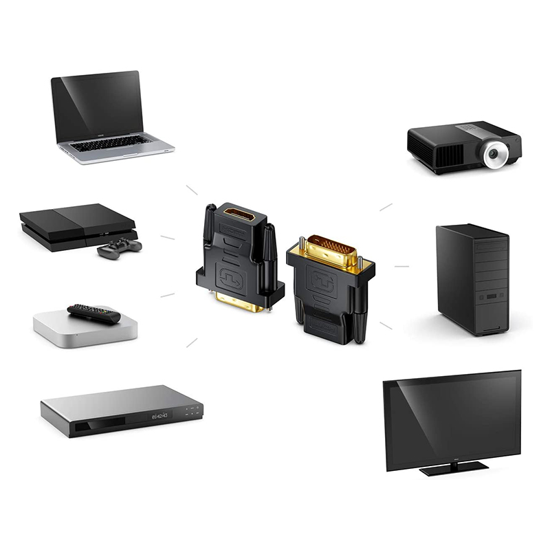 • deleyCON Adaptateur HDMI-DVI Connexion Simple et Rapide avec Votre Câble HDMI. Adaptateur Bidirectionnel DVI-HDMI. Connexions HDMI femmelle (19pol) vers DVI-D Mâle (24+1) Adaptateur HDMI-DVI.  Contacts Plaqué or Haute Qualité pour une excellente Transmission du Signal. Résolution Prise en Charge pour Moniteurs jusqu’à 1920 x 1200. Résolution Prise en Charge pour TV, LED, OLED, QLED ou Vidéoprojecteur: 1080p FULL HD . Transmission optimale de Signaux HD. Compatible avec TOUS les Câbles HDMI. Raccorder l’Adaptateur deleyCON  HDMI – DVI à la Sortie DVI de votre PC  et à l’Entrée HDMI de votre TV ou Vidéoprojecteur.  Compatible avec tous les Appareils avec Sortie DVI: PC, Computer, Carte Graphique, TV,  vidéoprojecteur, Moniteur PC