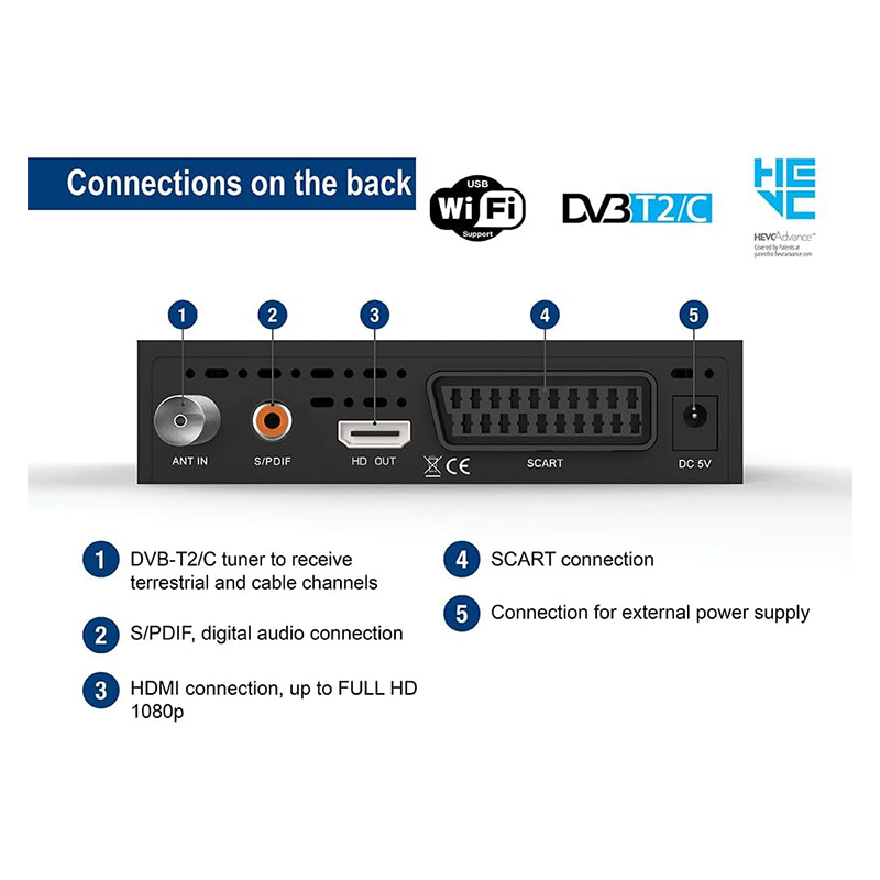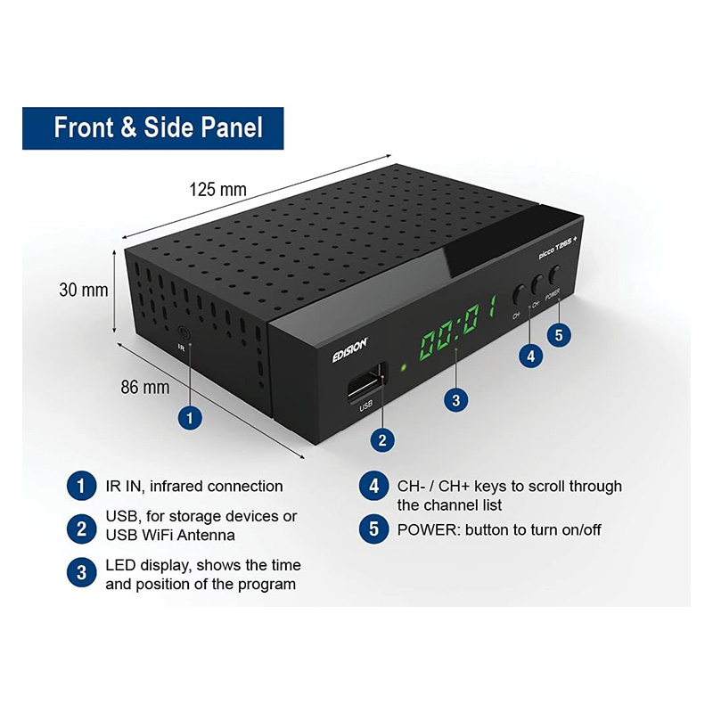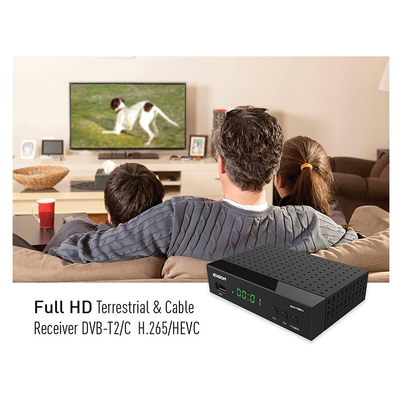 EDISION Picco T265 Plus Récepteur Terrestre TNT DVBT2 et par Câble DVBC, H.265 HEVC FTA Haute définition,PVR,USB,HDMI,SCART, Capteur IR