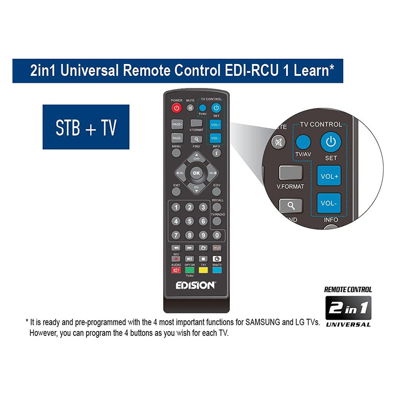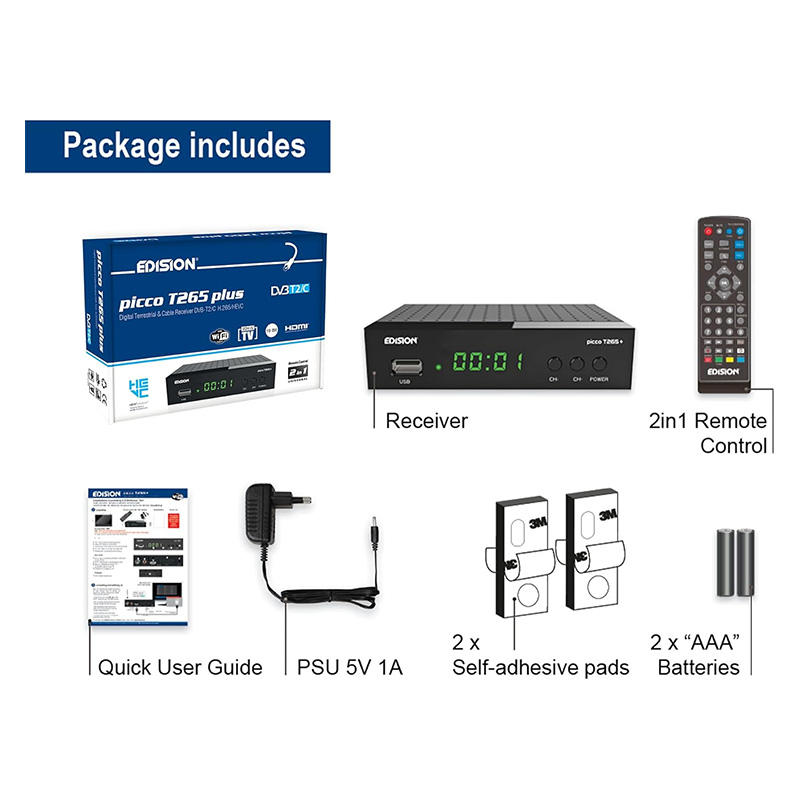 EDISION Picco T265 Plus Récepteur Terrestre TNT DVBT2 et par Câble DVBC, H.265 HEVC FTA Haute