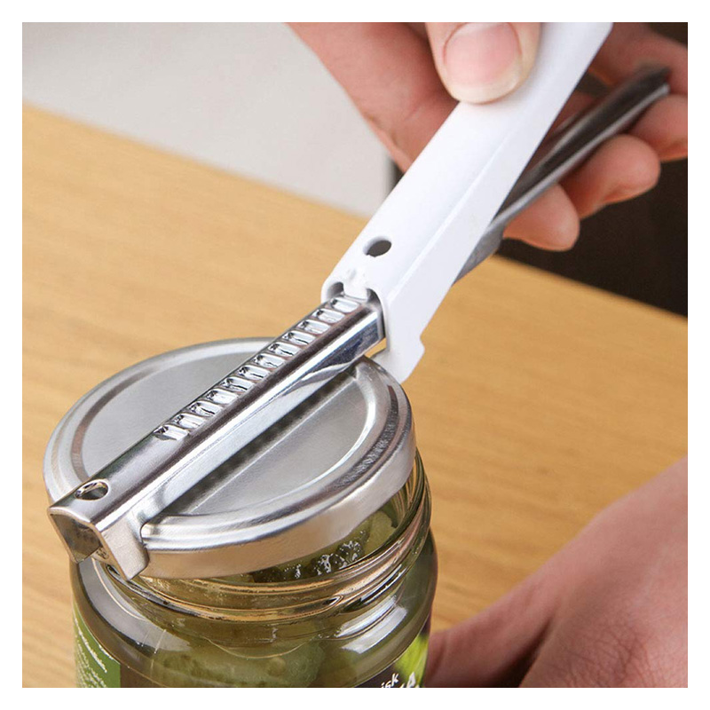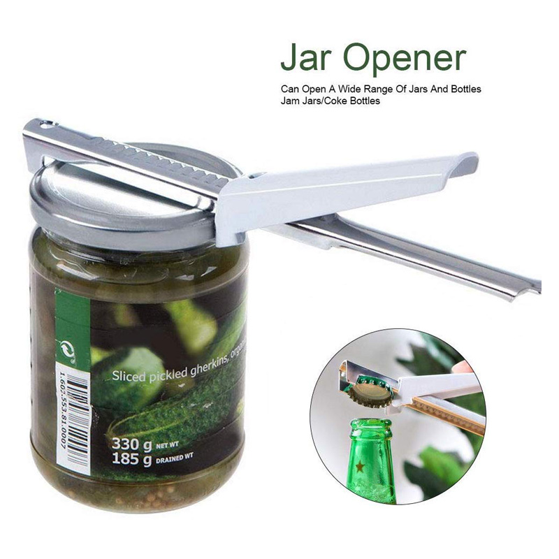 - Doté d’un matériau en acier inoxydable, robuste, durable et sûr à utiliser. Peut ouvrir une large gamme de bocaux et de bouteilles.Il fonctionne très bien avec la plupart des pots de confiture et peut également être ajusté pour s’adapter à une taille plus petite, telle que des bouteilles de coca. Faites simplement glisser la poignée blanche le long de la poutre jusqu’à ce que les mâchoires touchent les deux côtés du couvercle, appuyez sur la poignée et tournez-la dans le sens contraire des aiguilles d’une montre tout en maintenant le pot. Facile à ranger et prend peu de place dans le tiroir de votre cuisine.Vous pouvez également l’accrocher à un crochet puisqu’il y a un trou de suspension sur un côté de l’ouvre-boîtes.Certainement un assistant de cuisine indispensable! Peut être utilisé comme ouvre-bouteille, idéal pour les pique-niques en plein air ou le camping.