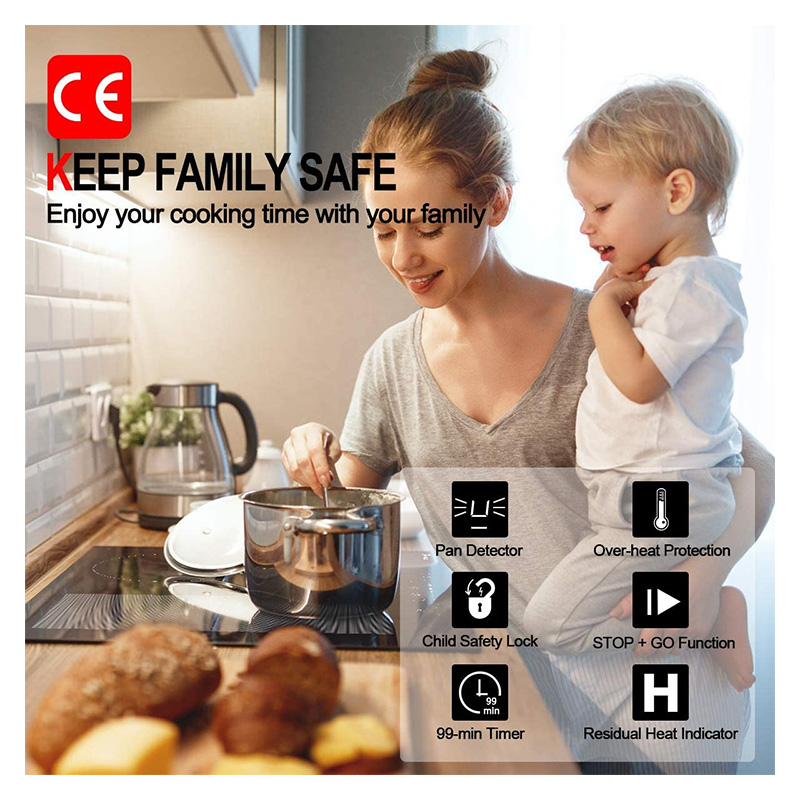 ➤ Plusieurs protections- La fonction de verrouillage de sécurité pour enfants empêche toute activation involontaire, l’affichage «H» indique que la table de cuisson est trop chaude au toucher. D’autres caractéristiques de sécurité, telles que la protection contre la surchauffe, la protection d’arrêt automatique rendent cette plaque de cuisson idéale pour les jeunes familles ainsi que les personnes âgées et les étudiants.