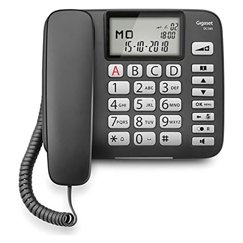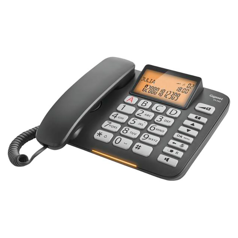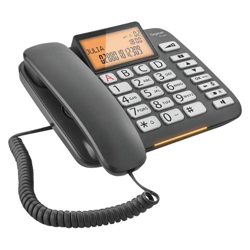 Téléphone analogique, filaire, écran alphanumérique, 99 numéros mémorisables, liste d’appels, indentification de l’appelant (Clip), dispositif mains libres, grosses touches