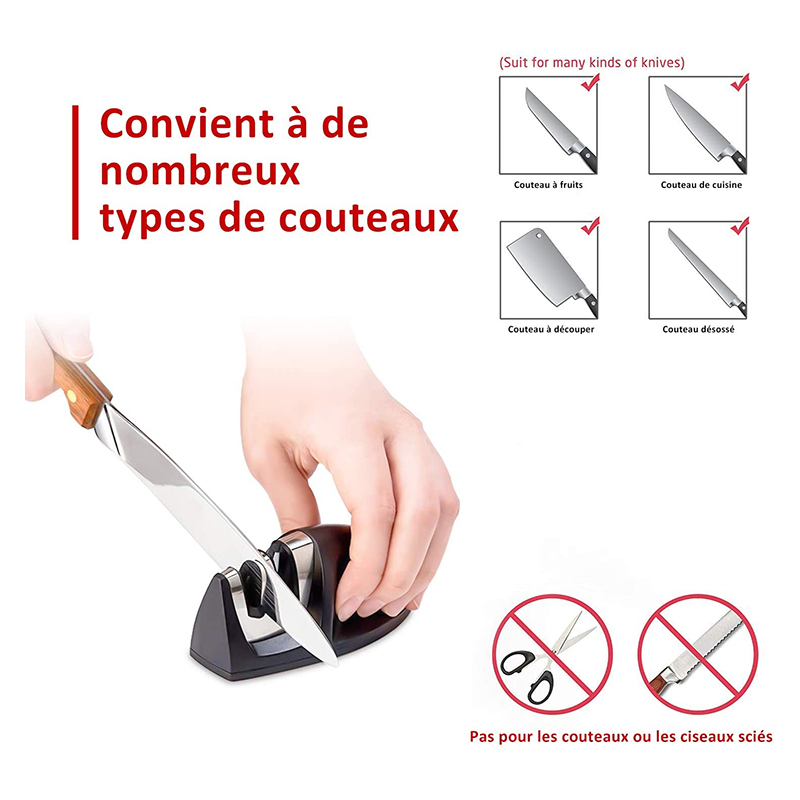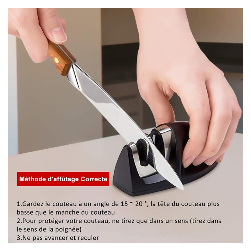 Facile à Utiliser: Mettre votre couteau dans la fente d’affûtage, ensuite aiguiser dans une direction et répéter 3–5 fois, dans les trois secondes, la lame est tranchante comme neuf. Idéal pour une utilisation quotidienne.