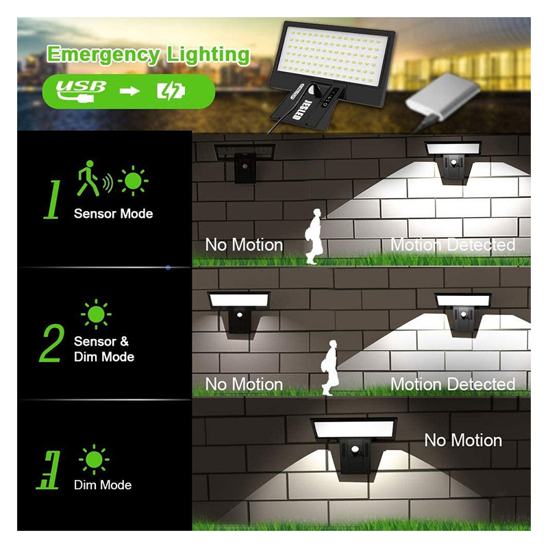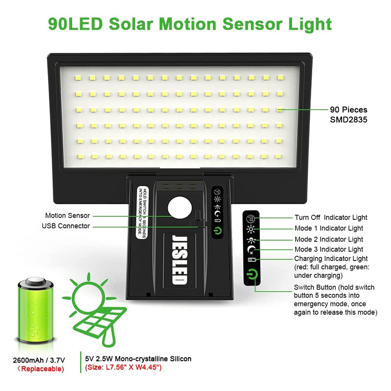 Lampe Solaire Extérieur,JESLED 2600 Mah Détecteur de Mouvement éclairage Solaire Extérieur étanche Sans Fil Lampe de Sécurité lampe Mural pour Jardin, pile remplaçable.