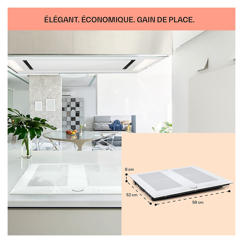 CUISINEZ AVEC STYLE ET LUXE: Avec une puissance de chauffe de 7000 watts, vous profitez d’une cuisson de haut niveau grâce à la fonction innovante ThermoBoost qui augmente et de maximise la température de cuisson de chaque plaque induction.