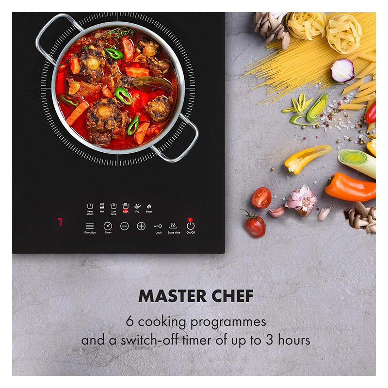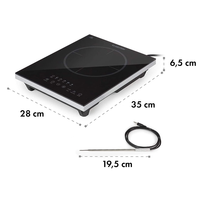 Klarstein Cook n Roll – Plaque à induction, table de cuisson électrique, 2000 W, 6 programmes, 10 niveaux de température, Minuterie, Thermomètre à viande,