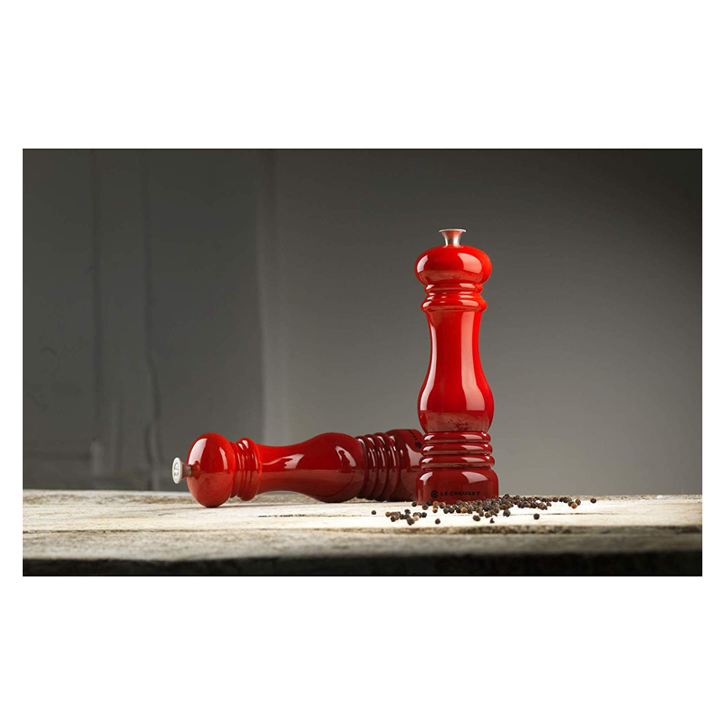 - Moulin à poivre ultra-résistant, Corps en ABS avec mécanisme de broyage en céramique, Inscription « P » gravée sur le bouton métallique. Mécanisme de broyage en céramique réglable avec bouton métallique pour différents degrés de broyage, Pour des grains épais ou fins en fonction de vos envies, Fonctionnement sans à-coups. Forme classique, technologie moderne et couleurs iconiques de la marque Le Creuset, Agréable au toucher, Dégradé de couleurs, Idéal pour offrir en cadeau. Quantité de remplissage : environ 45 gr de poivre noir en grains, Facile à remplir, Garantie 10 ans. Contenu : 1 Moulin à poivre Le Creuset, Matériau : Corps Ultra Résistant ABS/Mécanisme en Céramique, Dimensions : 6,2 x 6,2 x 20,8 cm, Quantité de remplissage : env ; 100 gr, Poids : 280 gr, Couleur: Cerise. D’autre couleurs à disposition avec ajustement du prix.