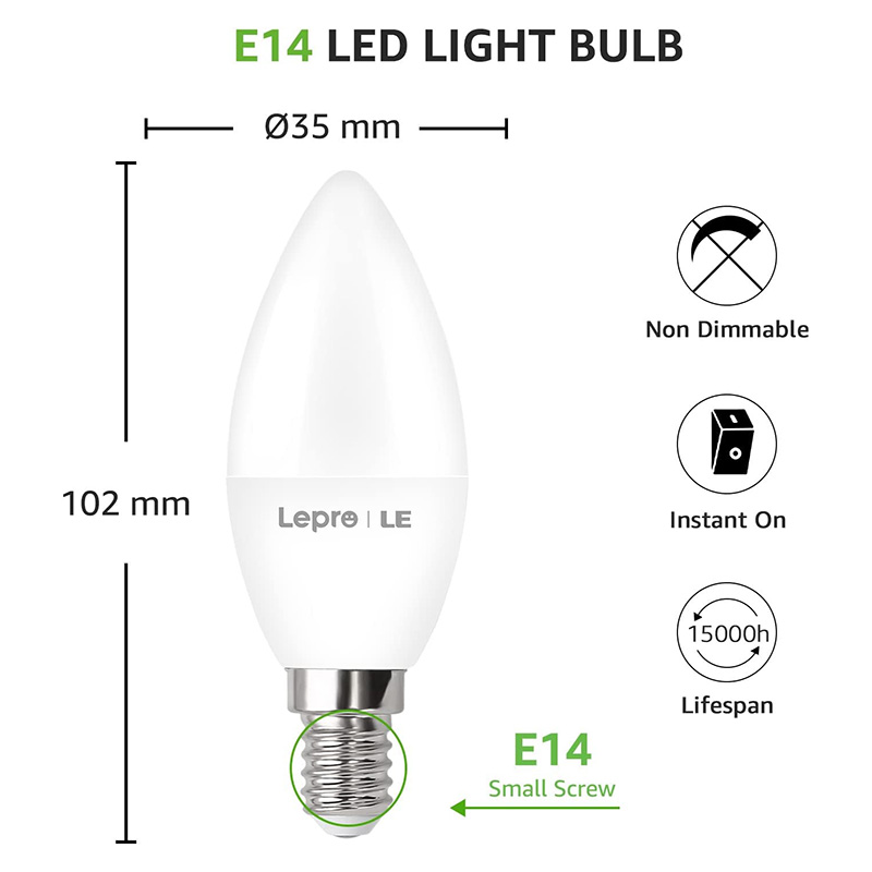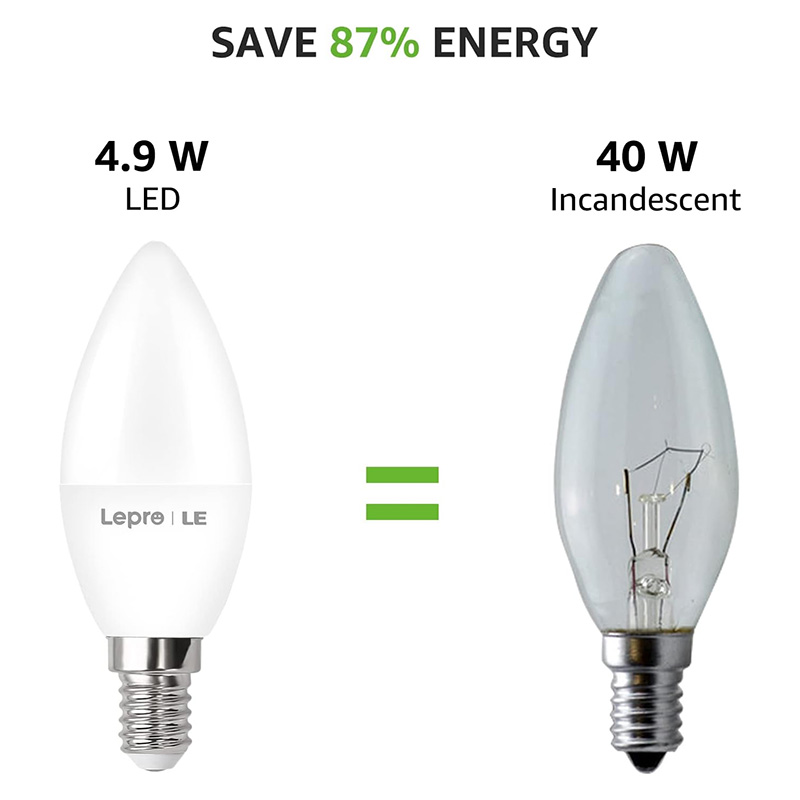 【Économie d’Énergie et Durabilité】L’ampoule LED LEPRO 4,9 watts E14 est un remplacement parfait de l’ampoule e14 à incandescence traditionnelle de 40 watts, vous permet d’économiser 87% d’énergie et dure plus de 15 000 heures.