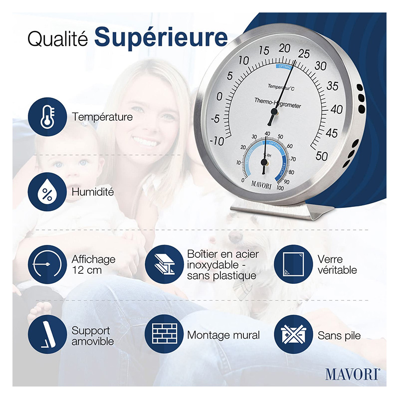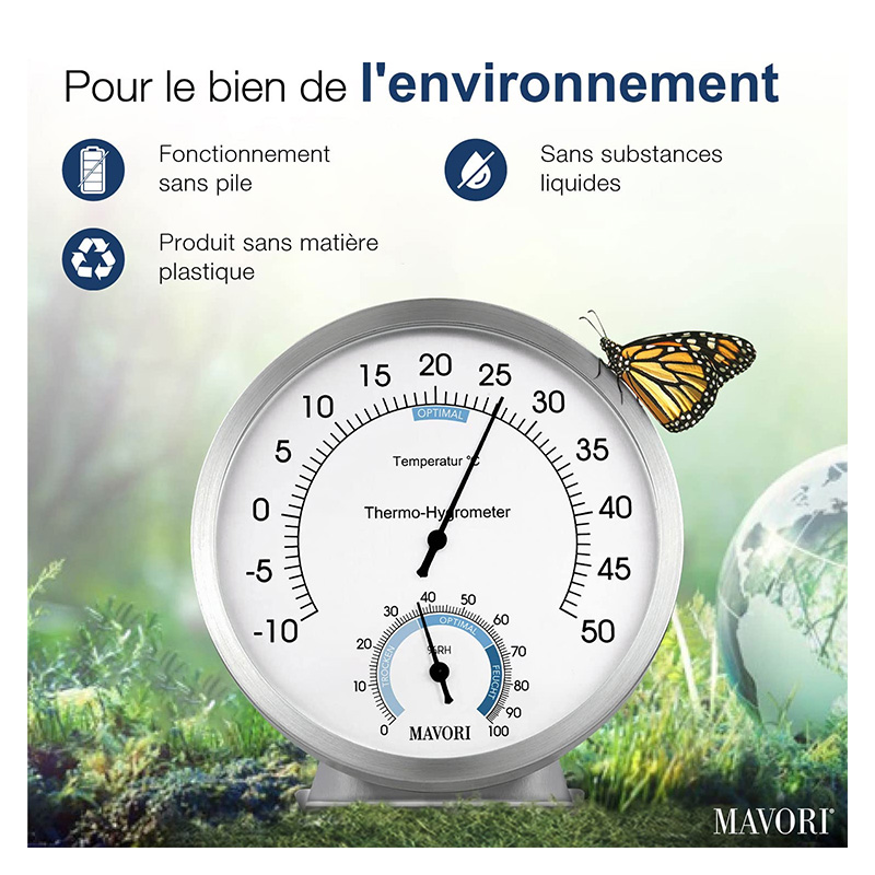 PRÉCIS ET FIABLE – Un compteur de température et d’humidité avec des lectures précises et grâce à son fonctionnement mécanique (bimétallique), ce compteur de climat intérieur fonctionne de manière très fiable!