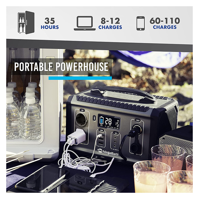 LA VERSION AMÉLIORÉE 2021: Alimentez vos appareils électriques jusqu’à 500 watts! La marque de batteries NINJABATT leader sur Amazon est fière de présenter son nouveau générateur électrique portable solaire. Avec ses 500 watts de sortie, elle est équipée d’une puissante batterie de secours de 560 Wh, d’un port PD3.0 type-C ultra rapide, d’un écran LED et bien plus encore.
