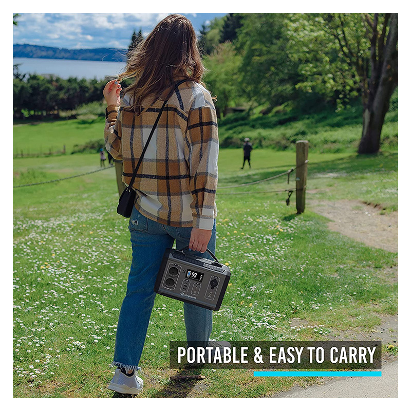 PARFAIT POUR LE CAMPING & LES ACTIVITÉS DE PLEIN AIR: Sa puissance et sa taille compacte (22.8×14.7×21.3 cm) en fait un appareil portatif et un indispensable en cas de coupures de courant ou des catastrophes naturelles. Notre générateur solaire portable alimente : appareil CPAP, téléphone, tablette, lumières, mini-réfrigérateurs, téléviseurs, projecteurs, lanternes et plus encore – en utilisant un onduleur à onde sinusoïdale pure.