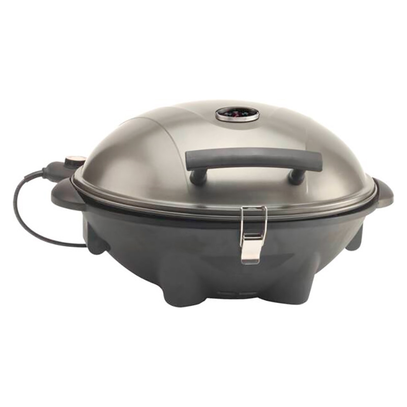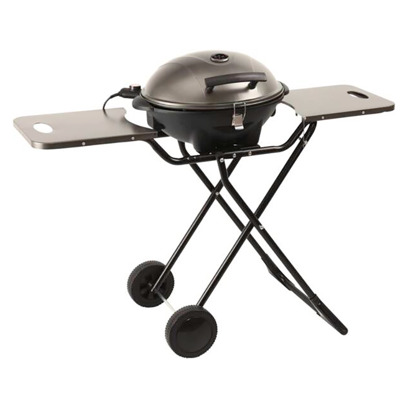 Grill barbecue électrique, rond, élément grill: plaque grill, revêtement anti adhésif, amovible sur roulettes, très pratique