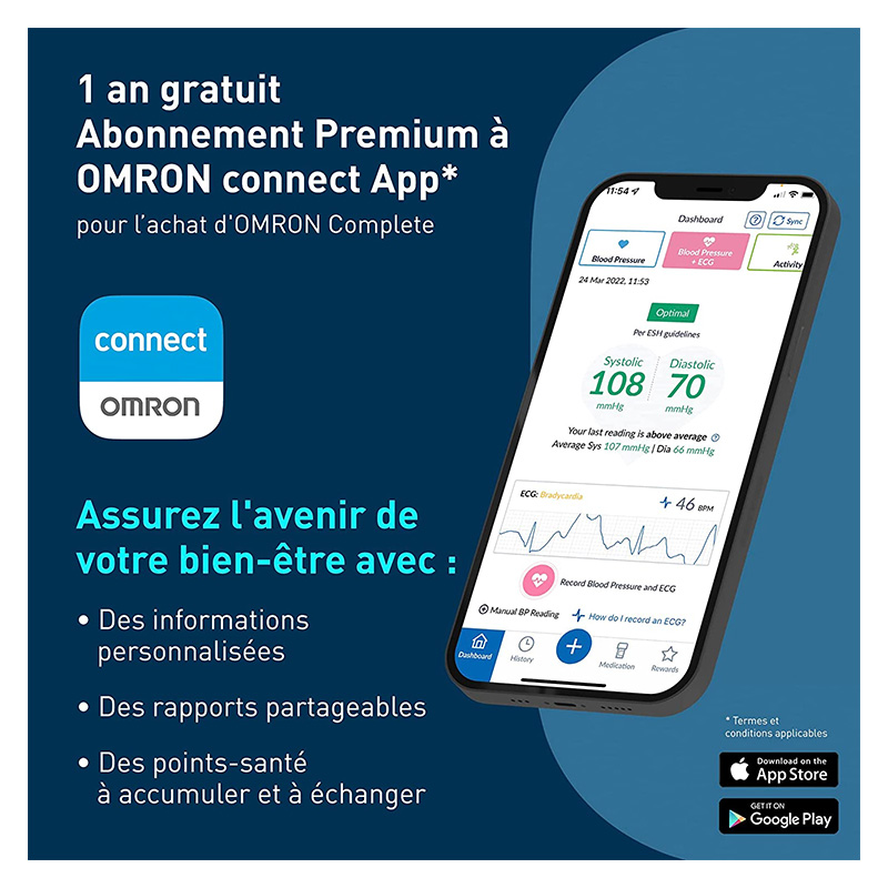 OMRON Complète smart Tensiomètre et ECG pour surveiller l’hypertension et détecter l’Afib á domicile