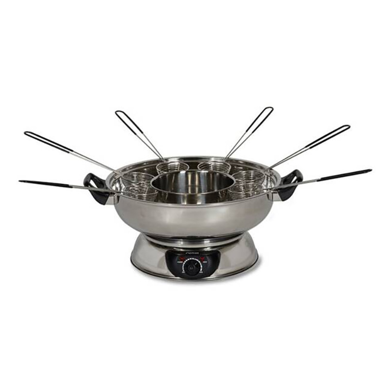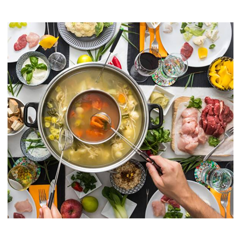 Pot Mongol Pour les Gourmets de Fondue contenance 2,5 L, 1600 Watts, inclus 6 fourchettes, couvercle en verre
