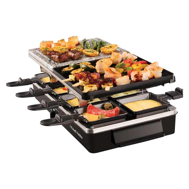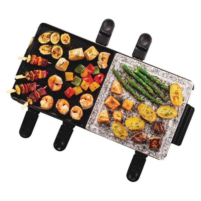 Appareil à raclette, rectangulaire, surface gril réversible, strié, (pierre chaude), Tepan-Yaki, 8 poêlons à raclette, revêtement anti adhésif, régleur de température
