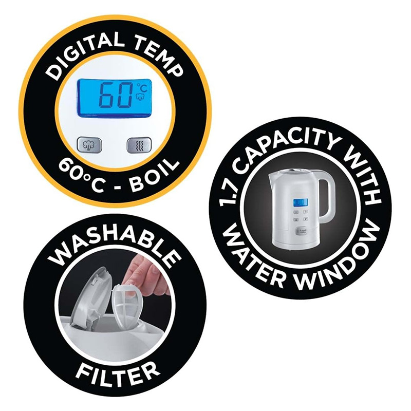 Russell Hobbs Bouilloire électrique [Réglage numérique précis température 25-100°C pour lait et aliments pour bébés, thés & plus]