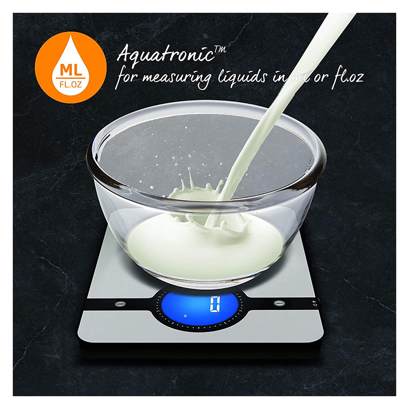Utilisez la fonction « Add & Weigh » (ajoutez et pesez) pour mesurer plusieurs ingrédients dans le même bol / casserole; utilisez la fonction Aquatronique pour mesurer des liquides (ml ou fl. oz)