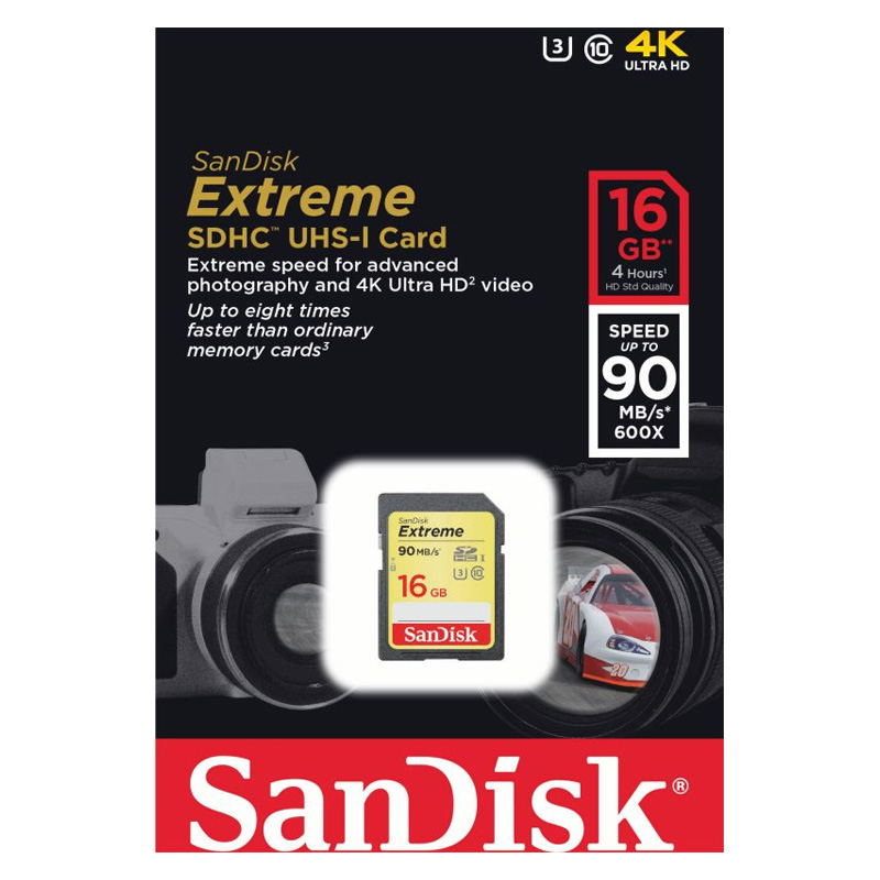 SANDISC Carte SDHC, capacité mémoire 16 GB, vitesse d’écriture jusqu’à 40 MB/sec, vitesse de lecture jusqu’à 90 MB/sec, Class 10, UHS-I, UHS Speedclass 3