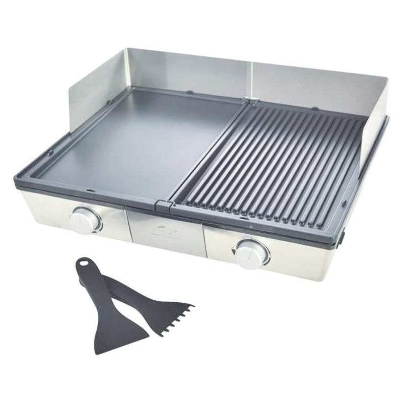 élément gril plaque gril, strié, lisse, détachable, surfaces grill: 20 x 32 cm, revêtement anti adhésif, 2200 Watts