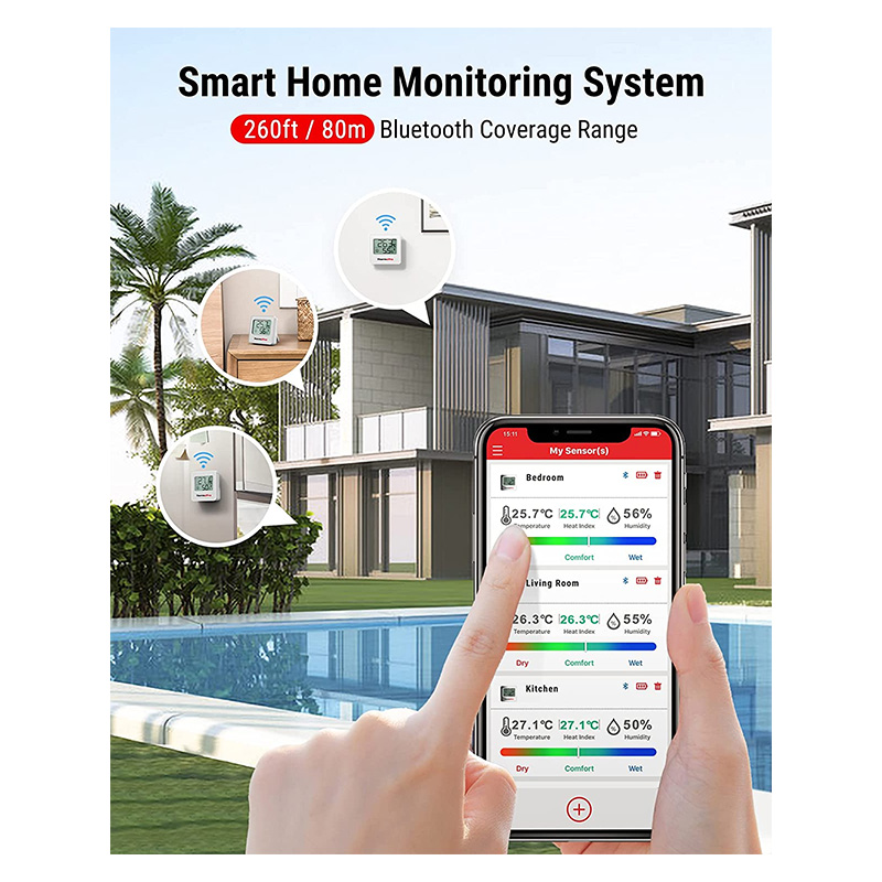 Portée Bluetooth Améliorée de 80 m/260 ft: Le thermomètre maison 2 pièces sans fil contient une technologie Bluetooth améliorée pour produire une portée stable et fiable de 80 m/260 ft (aucune obstruction) pour garantir que vous aurez toujours une couverture complète de la maison pour surveiller la température et l’humidité dans votre maison.