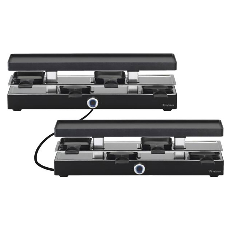 Appareil à raclette, surfaces grill: 44 x 10 cm, 8 poêlons à raclette, deux niveaux de raclette, régleur de température, 1800 Watts, 8 spatules bois