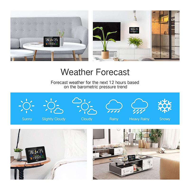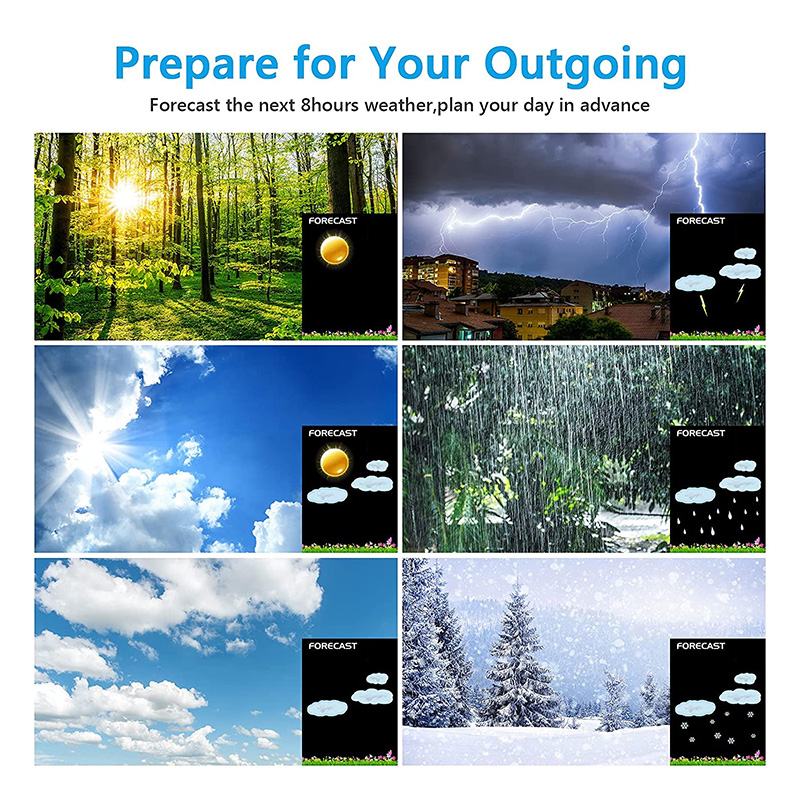 ❄ Station météo 9 en 1.Température et humidité extérieures, prévisions météorologiques, température et humidité intérieures, phase et date de la lune, alarme et sommeil, baromètre. Notre station météo vous permet de connaître plus facilement la météo et d’avoir une vie quotidienne plus confortable et agréable.