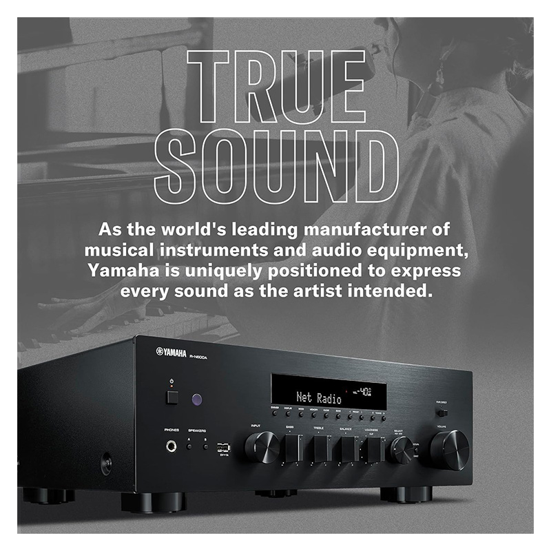 Ampli-tuner stéréo, puissance nominale 2 x 80 Watts, puissance musicale 2 x 115 Watts maxi, AirPlay 2, contrôlable via App, connexion Ethernet